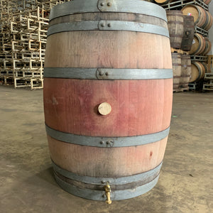 Very Large 73g Wine Rain Barrel w/brass spigot, Teflon tape & wood bung. Heavy duty 160+ lb barrels that have 8 galvanized steel bands.